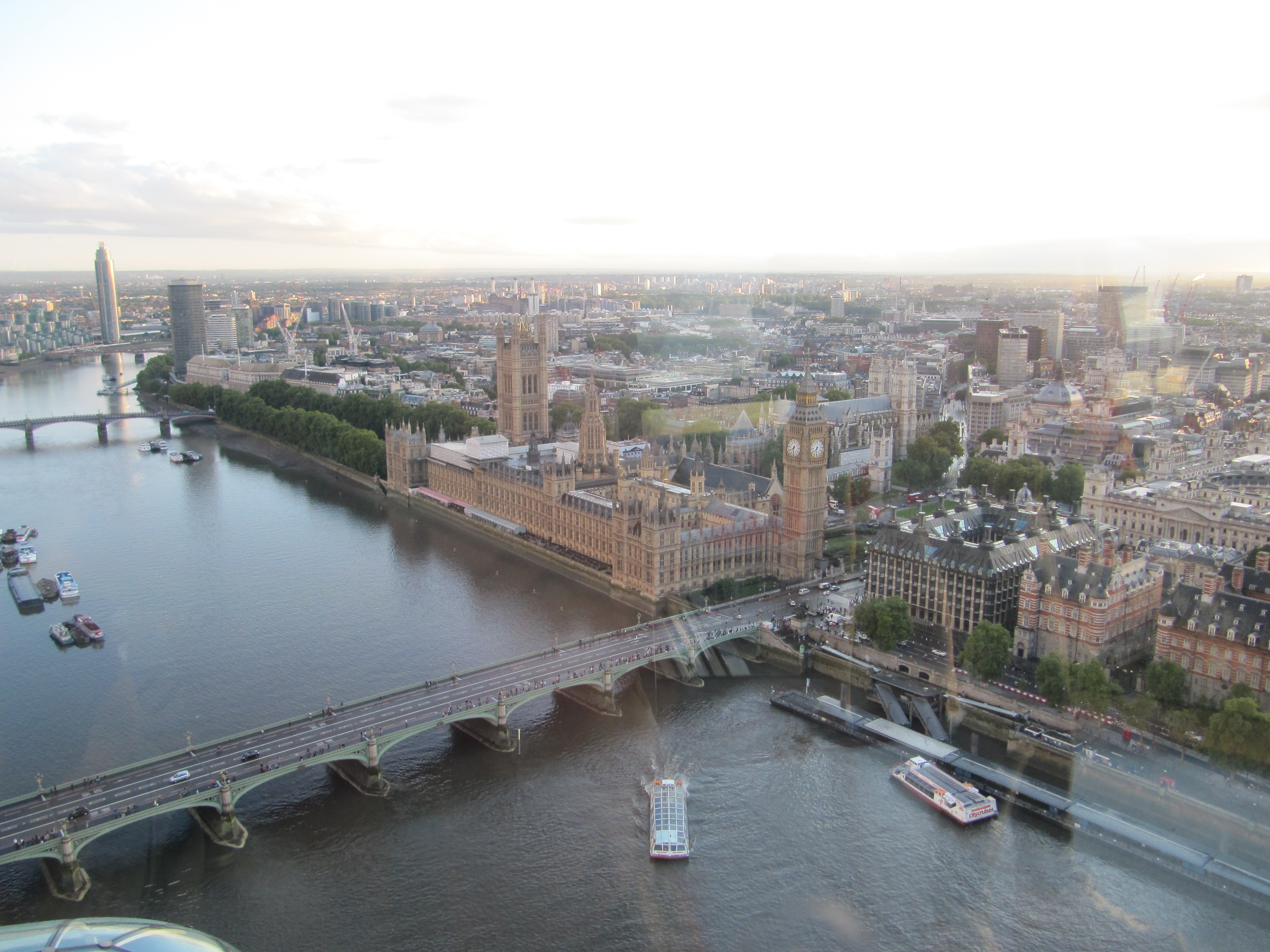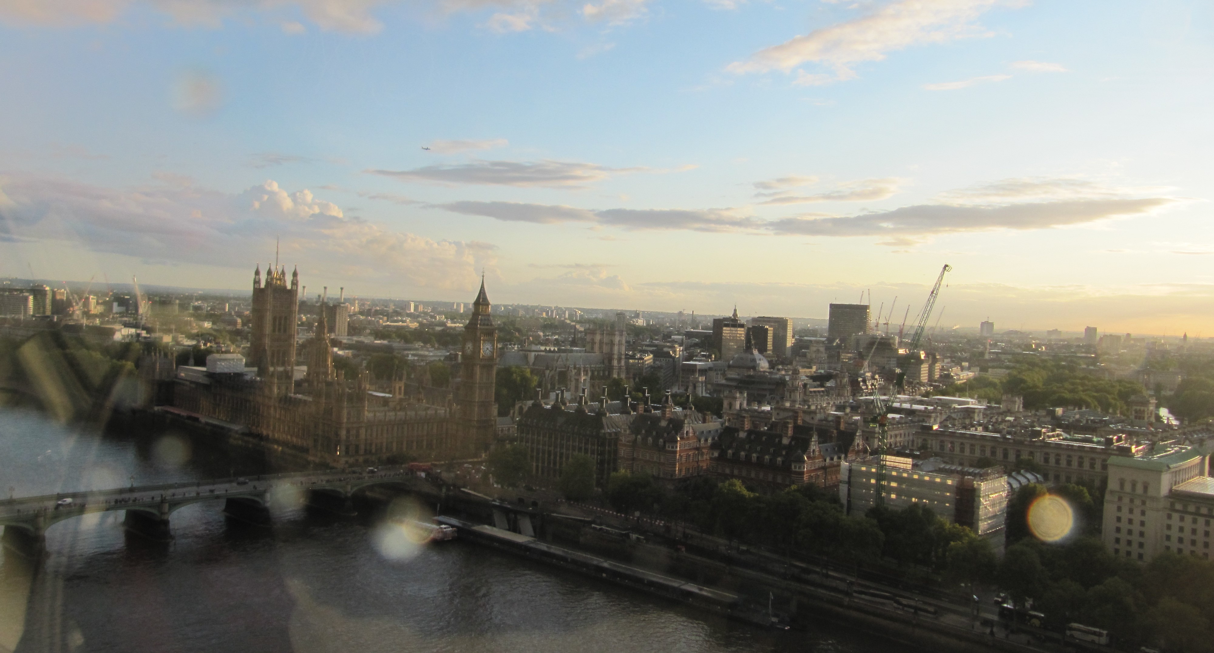 Terminamos la tarde en el London Eye (os recuerdo que nos habíamos cogido la entrada conjunta con el Museo Madame Tussauds). Consejos: muy caro para lo que es, y si podéis, no subir después de haber llovido, ni al atardecer, se quedaron las gotas marcadas en los cristales de las cabinas, y no se podían hacer buenas fotos. Y el sol del atardecer cegaba un poco y no dejaba ver bien, así que imagino que una mañana de sol o nublada, sin haber llovido sería el momento ideal.