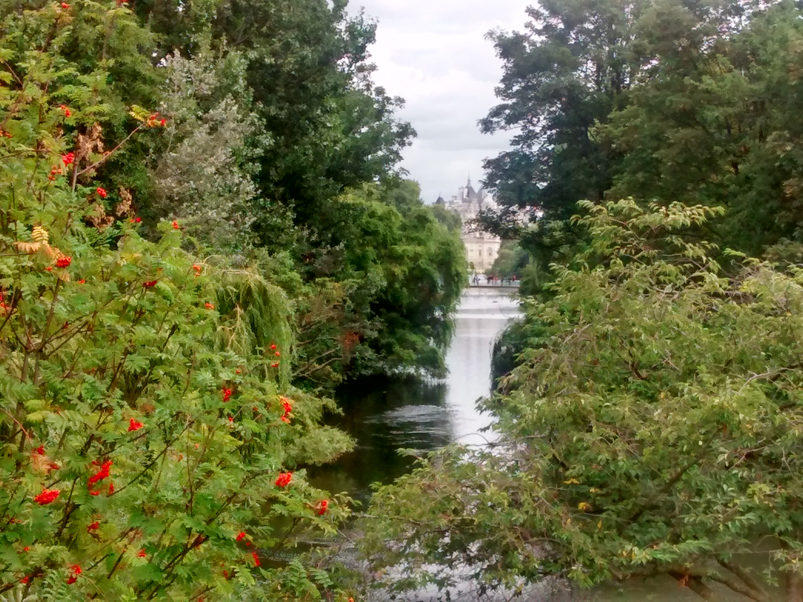 En uno de esos espacios de tiempo en los que se podía pasar, cruzamos la avenida hacia St James Park (nada que envidiar a Hyde Park), relajante, precioso, con animalitos, ardillas y puente con la vista de las Caballerizas de la Guardia Real al fondo que podría ser una escena de una película.